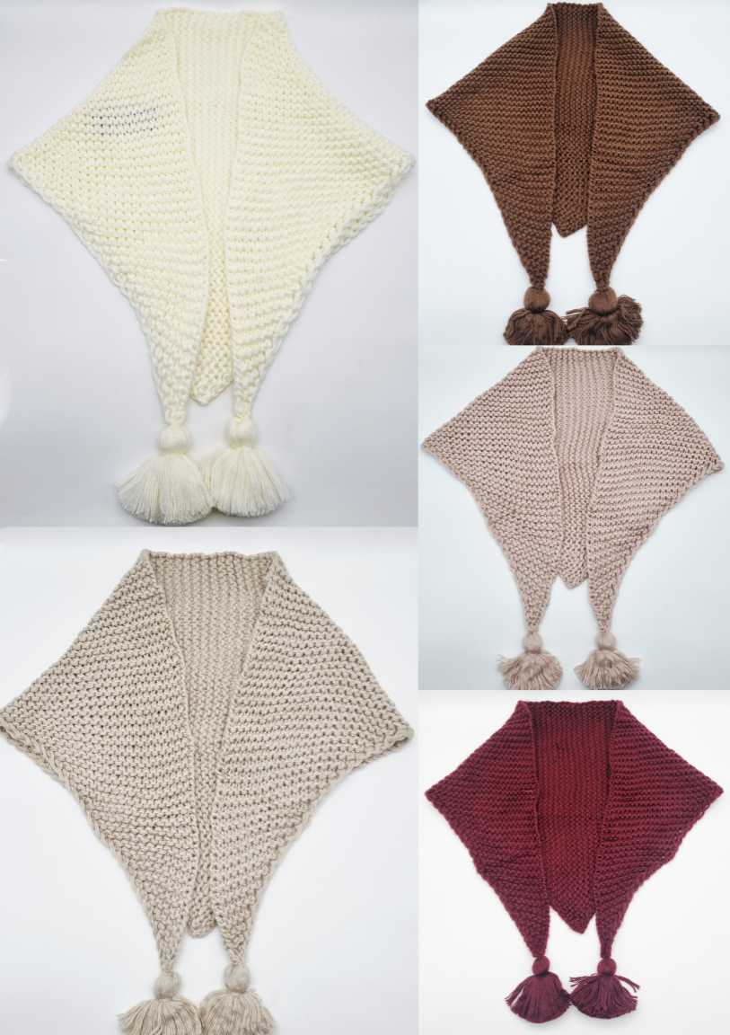 BUFANDA TRIANGULAR TEJIDA, COLOR ROSA, CAFÉ, BEIGE, VINO O BLANCO