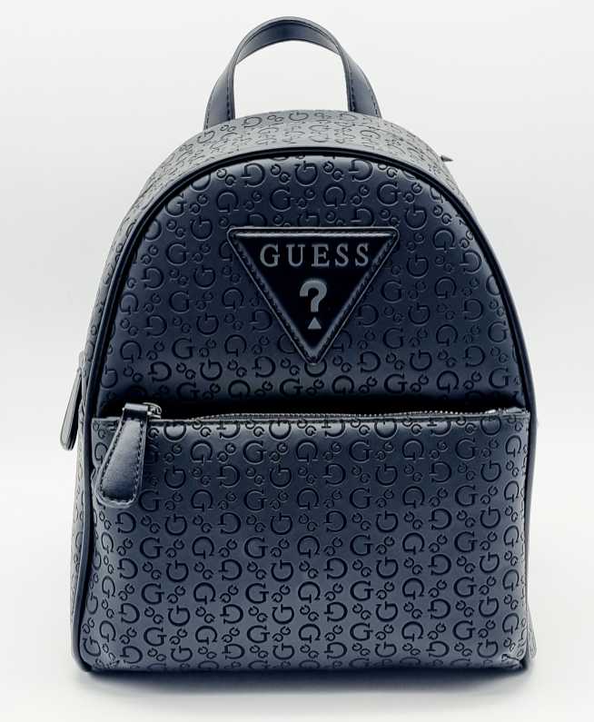 MOCHILA DOBLE COMPARTIMENTO GUESS CON RELIEVE, ORIGINAL, COLOR NEGRO