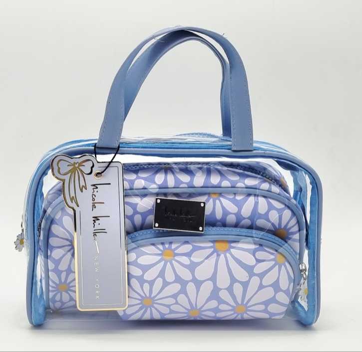 COSMETIQUERA NICOLE MILLER CON 3 PIEZAS, COLOR AZUL FLORAL