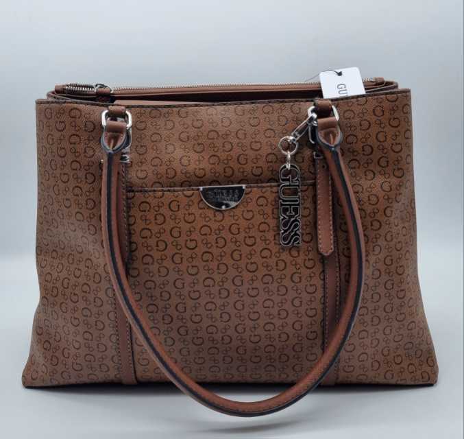 BOLSO TOTE GRANDE TRIPLE COMPARTIMENTO GUESS CON LLAVERO, ORIGINAL, COLOR CAFÉ