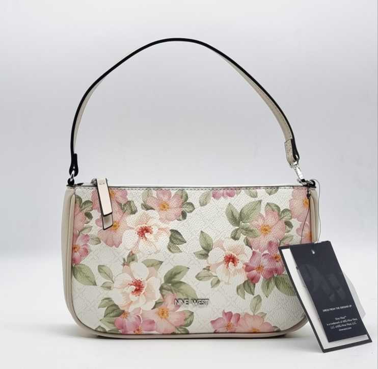 BOLSO BAGUETTE ESTAMPADO FLORAL NINE WEST, ORIGINAL, COLOR BEIGE