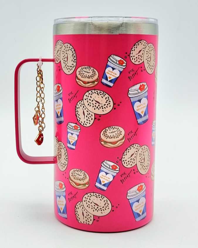 TAZA THERMO BETSEY JOHNSON, CAPACIDAD 710 ML, CON CHARMS COLGANTES, COLOR ROSA