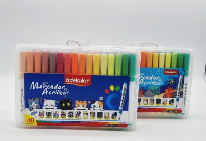 PLUMINES ACRÍLICOS ADEKOLOR, BASE DE AGUA, 48 PIEZAS