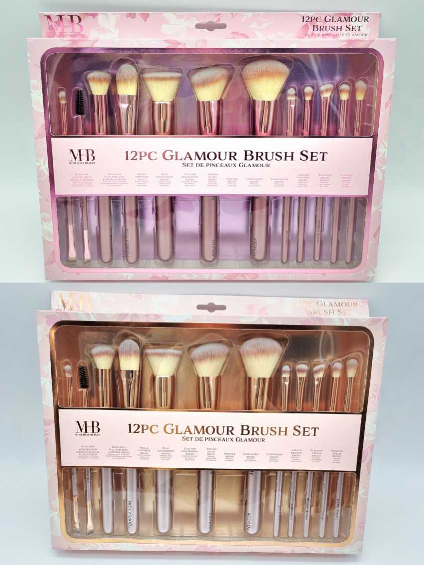 SET DE BROCHAS PROFESIONALES MUST HAVE BEAUTY, 12 PIEZAS, COLOR ROSA METÁLICO O NACARADO, ORIGINAL