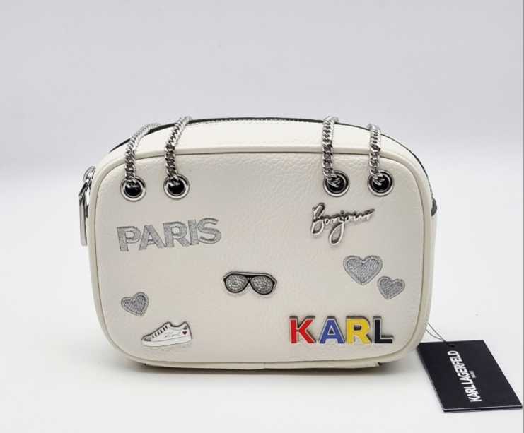 BOLSO CROSSBODY KARL LAGERFELD CON CADENA, ORIGINAL, COLOR BLANCO