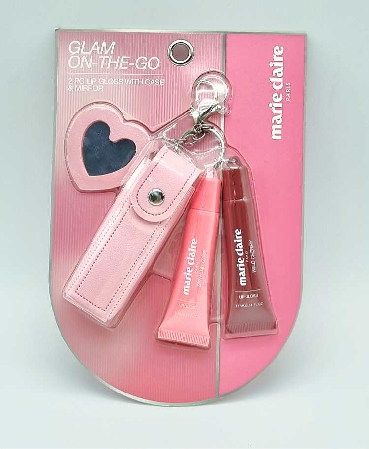 LIP GLOSS GLAM ON THE GO CON LLAVERO, PORTA LABIAL Y ESPEJO MARIE CLAIRE