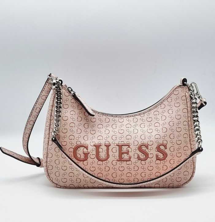 BOLSO HAVANNA LOGOTIPO RELIEVE GUESS CON CORREA, ORIGINAL, COLOR ROSA
