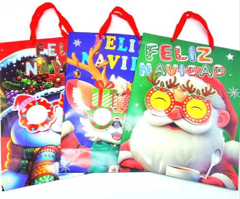 BOLSA DE REGALO NAVIDEÑA, TAMAÑO GRANDE, DISEÑO 3D Y DIAMANTINA