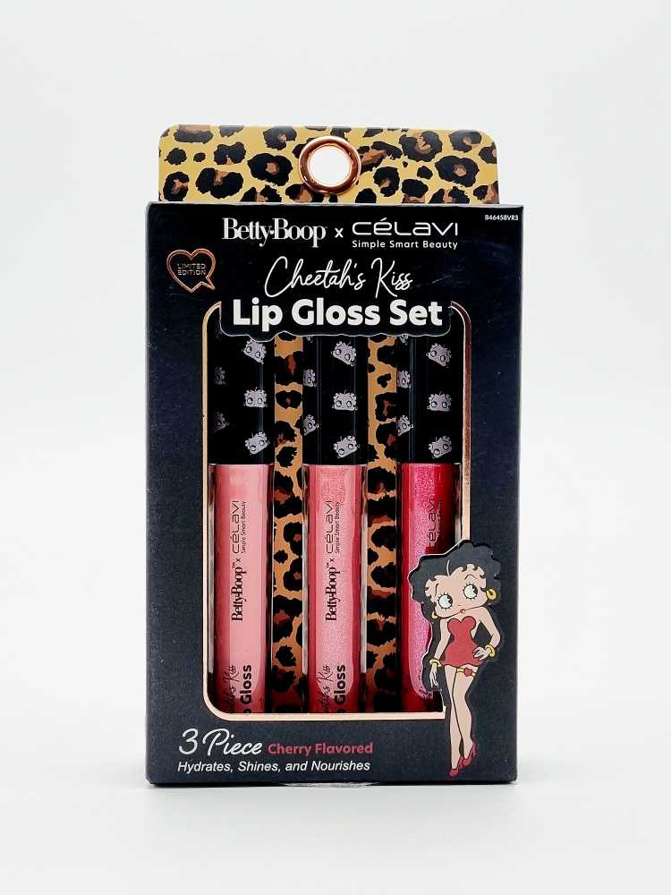 LIP GLOSS CHEETAH'S KISS CÉLAVI BETTY BOOP, 3 G C/U, 3 PIEZAS, ORIGINAL