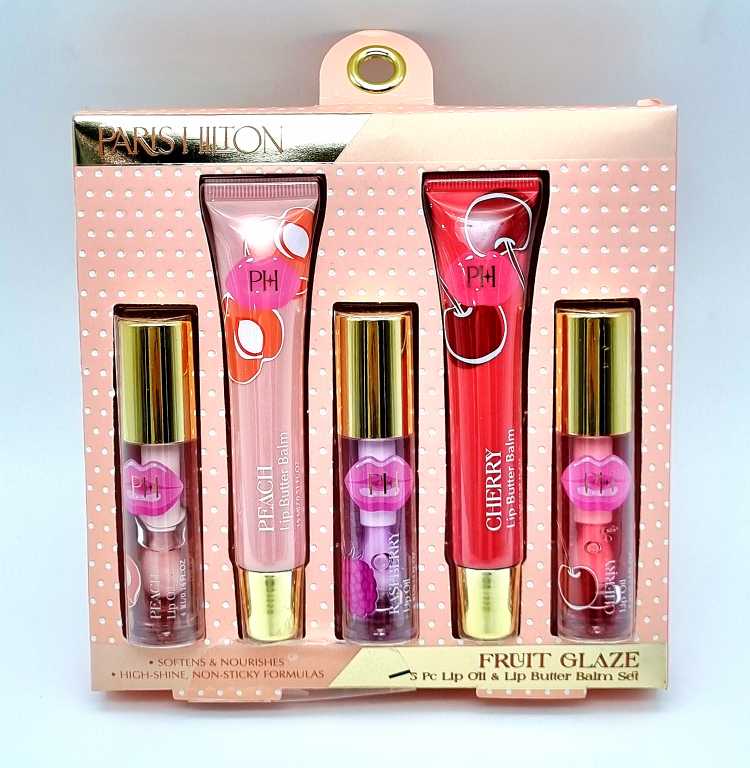 LIP OILS & LIP BUTTER BALM PARIS HILTON, 5 PIEZAS, 12 Y 3.5 ML C/U, ORIGINAL