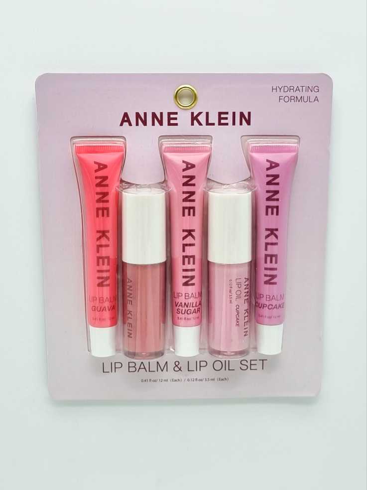 LIP BALM & LIP OIL ANNE KLEIN, 5 PIEZAS, 12 Y 3.5 ML C/U, ORIGINAL