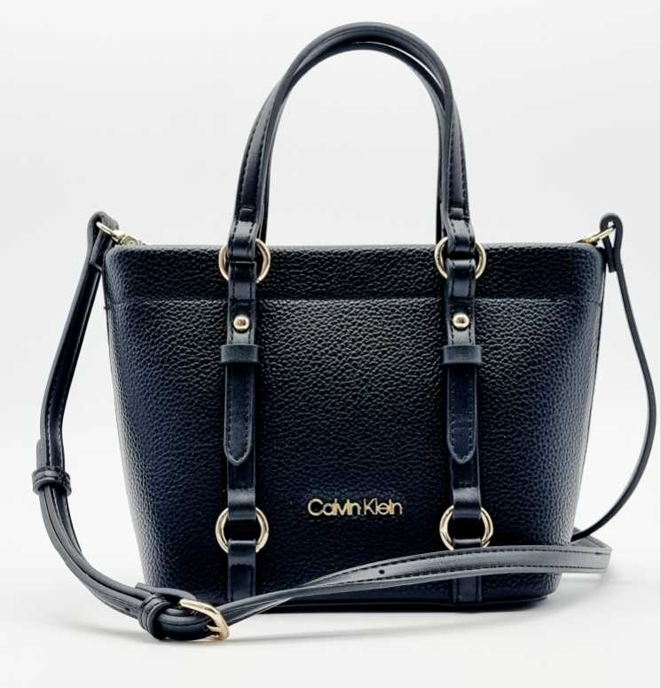 BOLSO MINI TOTE LISO CALVIN KLEIN CON CORREA AJUSTABLE, ORIGINAL, COLOR NEGRO