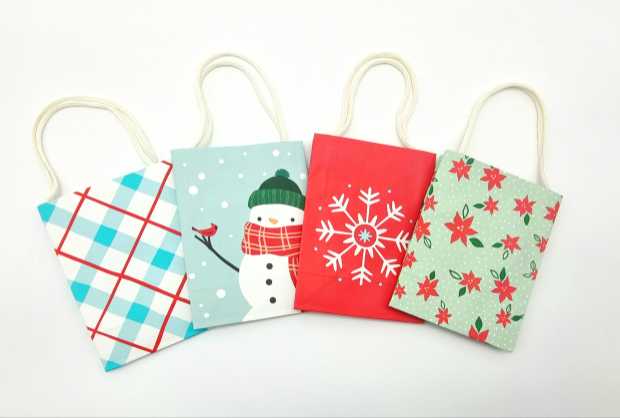Bolsa Navidad Pequeña con estambado de frases Peace, Holly Jolly, Merry Cristmas