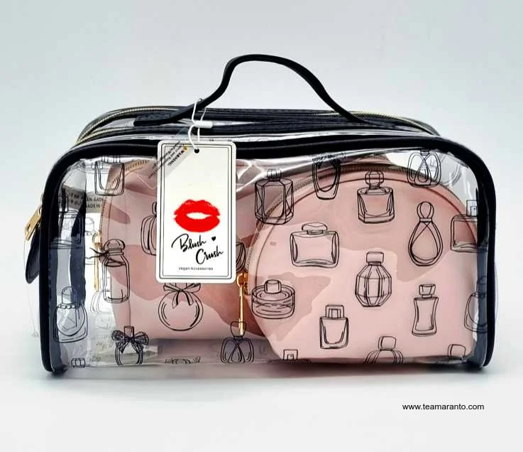 COSMETIQUERA DOBLE CIERRE BLUSH CRUSH CON 3 PIEZAS, ROSA CON NEGRO