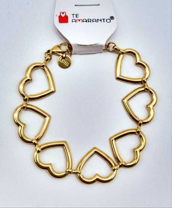 PULSERA DE CADENA GRUESA DE CORAZÓN HUECO, COLOR DORADO