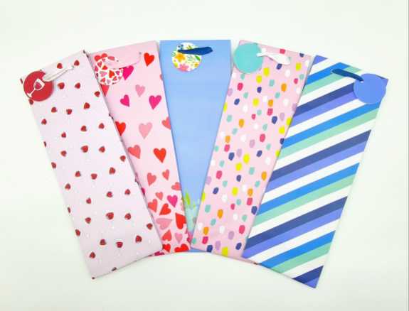 Bolsa de regalo para botellas con diseño dorado color negra, azul o vino